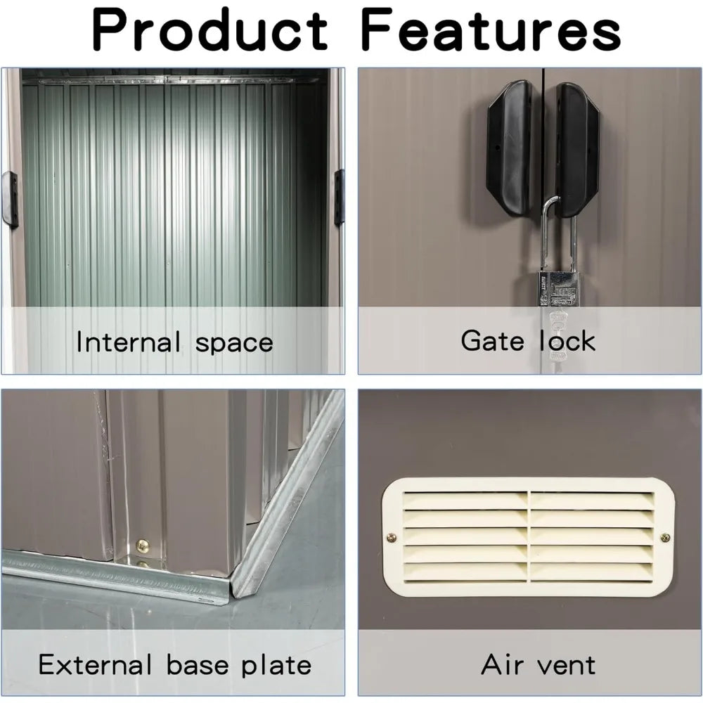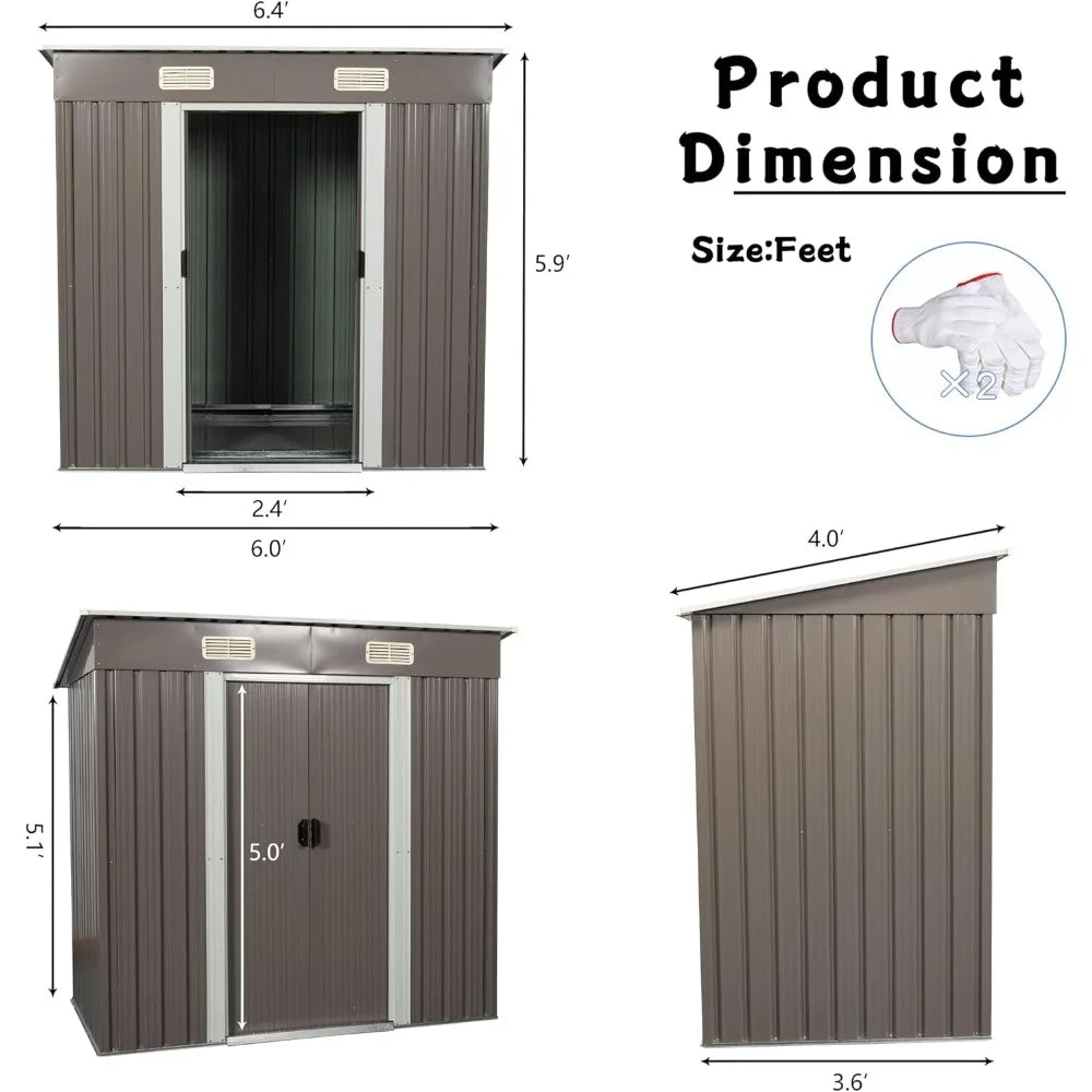 - π‘π¨ππ-πππππππ πΊππππππ πΊπππ : The metal garden storage shed building can not only withstand the sun, high temperature, but also easily applied to wind and rainy days. In addition, this metal lean to shed with a sloped roof will help avoiding leakage or accumulation from the heavy rain or heavy snow effectively. Four integrated punched vents are designed for improving air circulation which will help keep your tools in good condition.