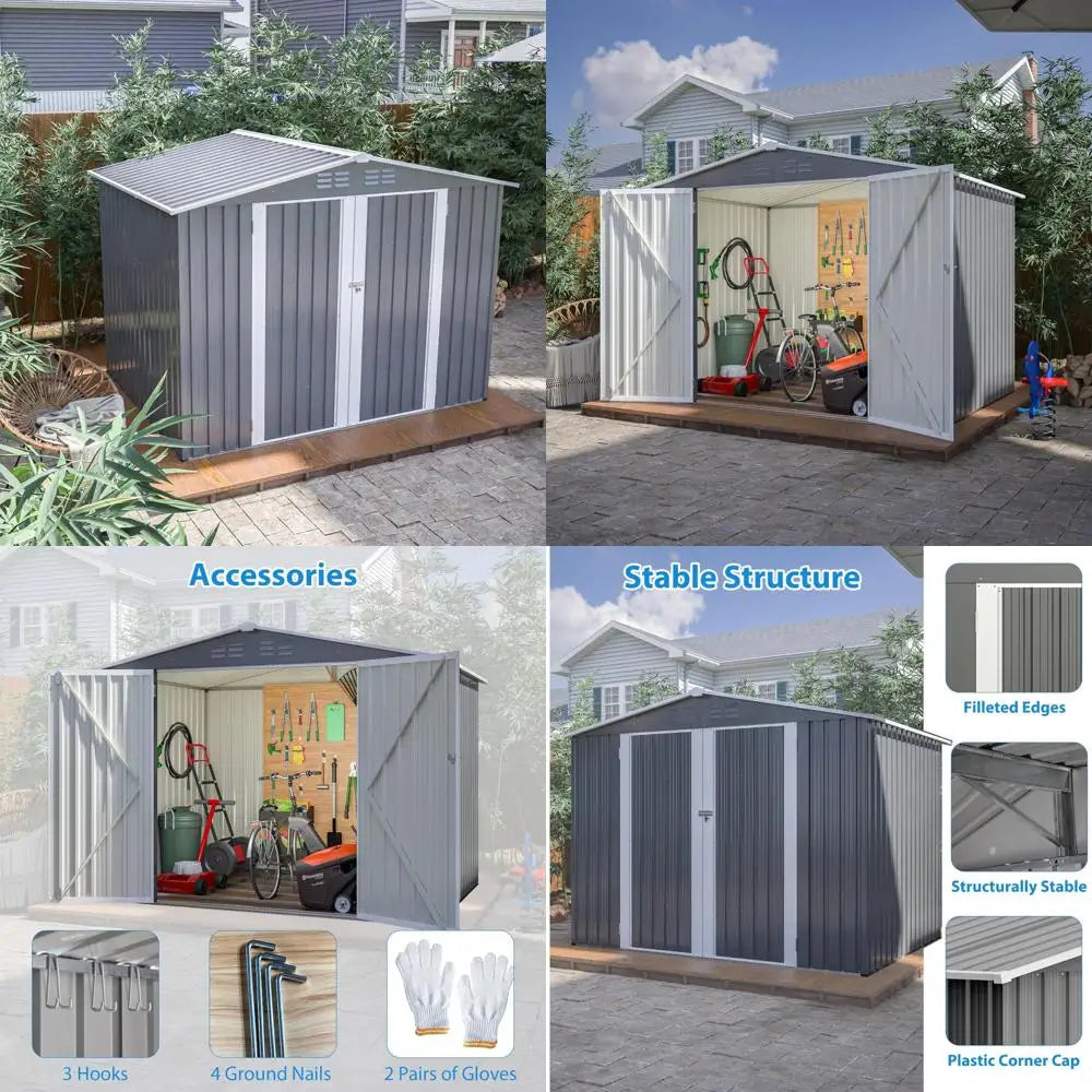 - ๐ก๐๐๐ข๐ง๐๐จ๐ซ๐๐๐ ๐๐ญ๐ซ๐ฎ๐๐ญ๐ฎ๐ซ๐: There's nothing more frustrating for gardeners than a collapsed garden tool shed. Luckily, this sheds & outdoor storage 8x6 features an upgraded reinforced frame floor, windproof ground stakes and aluminum alloy frame for enhanced stability. The thick galvanized steel panels are coated with high-quality paint, making them rust, UV, and moisture-resistant, ensuring durability and the ability to withstand harsh weather for at least 10 years.