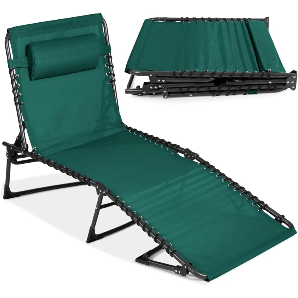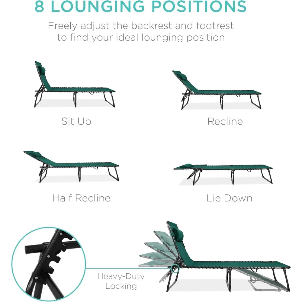 Patio Chaise Lounge Chair, Portable Outdoor Folding Recliner for Lawn, w/ 8 Positions, Handles, 300lb Capacity - Forest Green