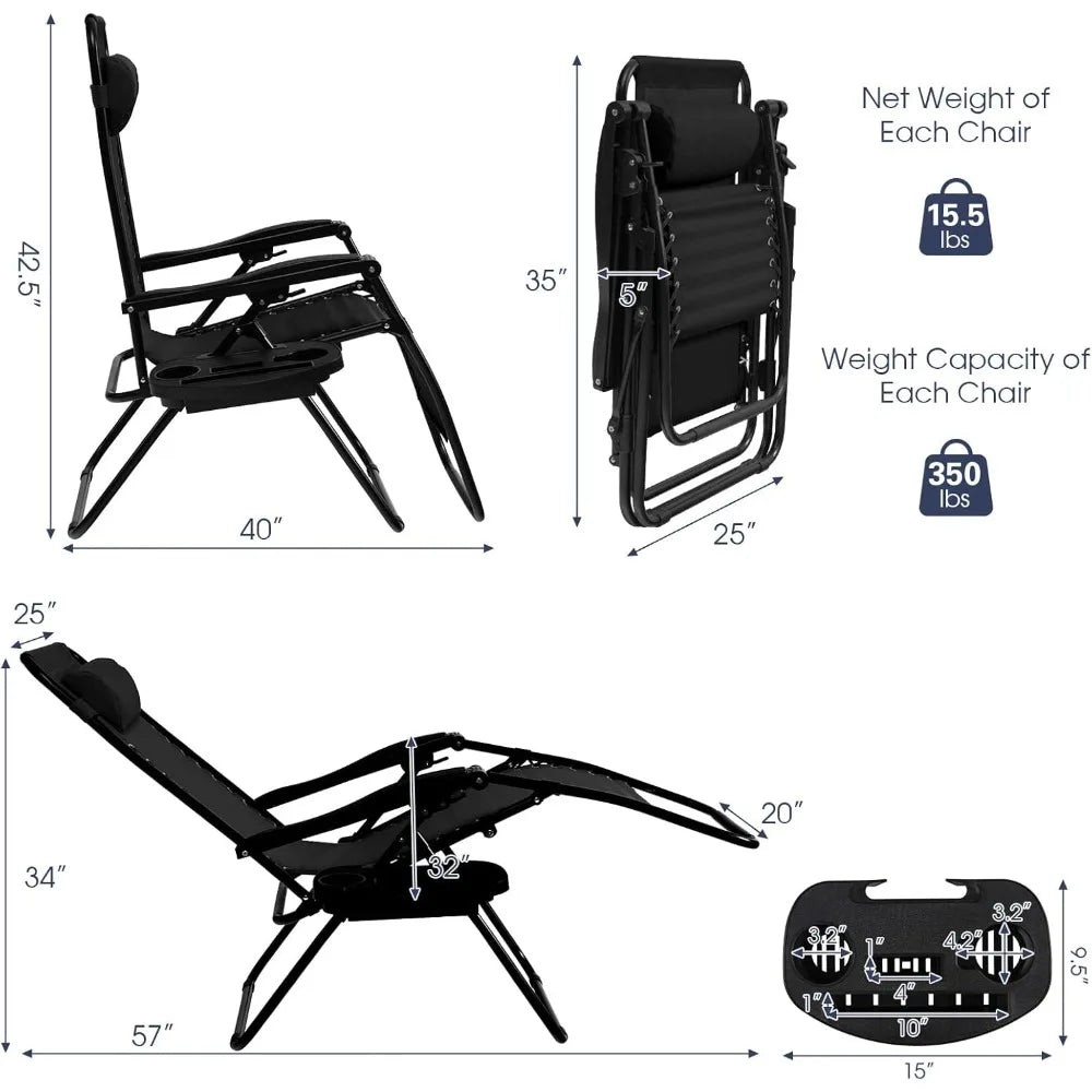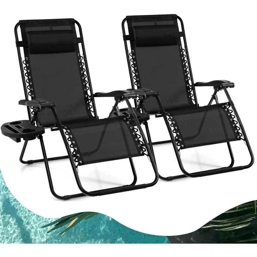 Zero Gravity Lounge Chairs, 160°Adjustable Folding Recliner w/Pillow and Cup Holder, 350LBS Comfy Outdoor Lounge Chairs for Pat